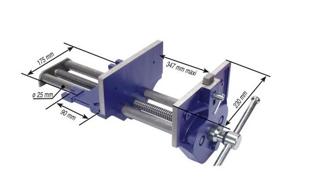 Les deux mors mobiles, en fonte, sont mis en mouvement par une vis à filetage trapézoïdal en acier de 24 mm. Guidé par 2 solides tiges en acier de ø25 mm, l’ensemble assure un déplacement fluide, sans à-coups et parfaitement parallèle ainsi qu’une grande puissance de serrage.